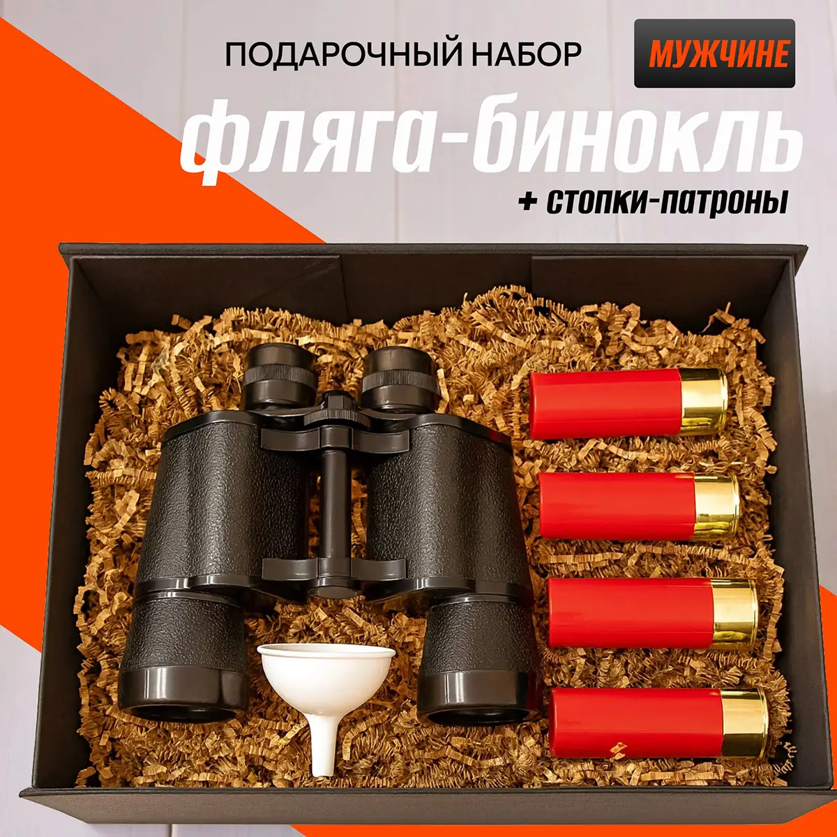 Что будет если соединить фляжку в виде бинокля и стопки в виде охотничьих патронов? А получится идеальный подарок для мужчины, даже если он не любит стрелять в животных.