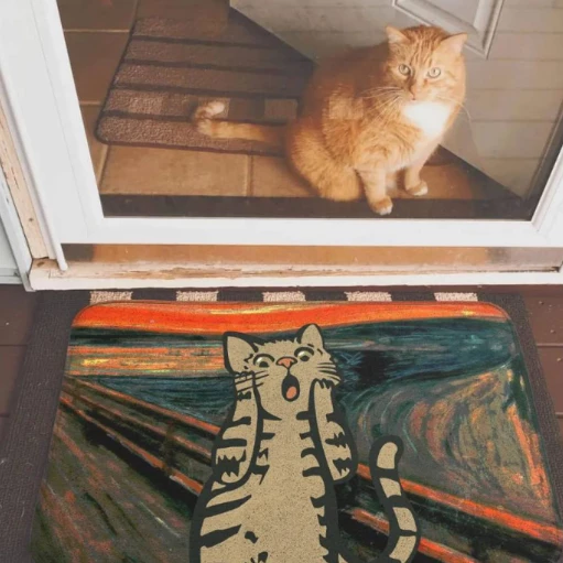 Все мы знаем, как бабушки любят ухаживать за свои домом - всевозможные салфеточки, скатерти и занавески. И приятный коврик в прихожу несомненно порадует ее! Например, такой коврик с забавным котиком.