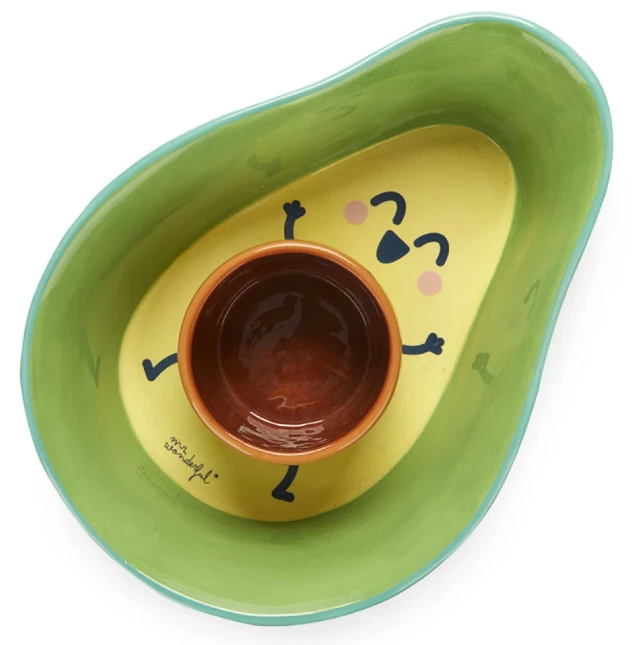 Оригинальное керамическое блюдо для снеков и закусок обратит на себя внимание гостей и удивит необычной подачей угощений. Аксессуар, выполненный в форме очаровательного авокадо легко разбирается и моется. Дополнительная емкость выполнена в форме косточки авокадо. Можно разместить ее внутри блюда или сбоку и использовать как соусницу. Так же чашечка-косточка может выступать для скорлупы и косточек от орешков, оливок и других закусок.
