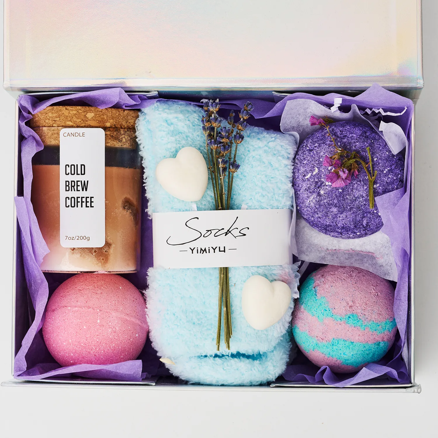 Набор «Лавандовый космос» — это нежная и продуманная идея подарка любимой девушке на день рождения, когда хочется подарить заботу, атмосферу и красивый ритуал. В составе набора: лавандовые бомбочки для ванны, ароматная свеча, уютные носочки, браслет-оберег, карта с посланием и мини-брошюра с описанием ритуала. Такой подарок с настроением помогает расслабиться, замедлиться и почувствовать внимание, превращая обычный вечер в тёплый момент только для неё.