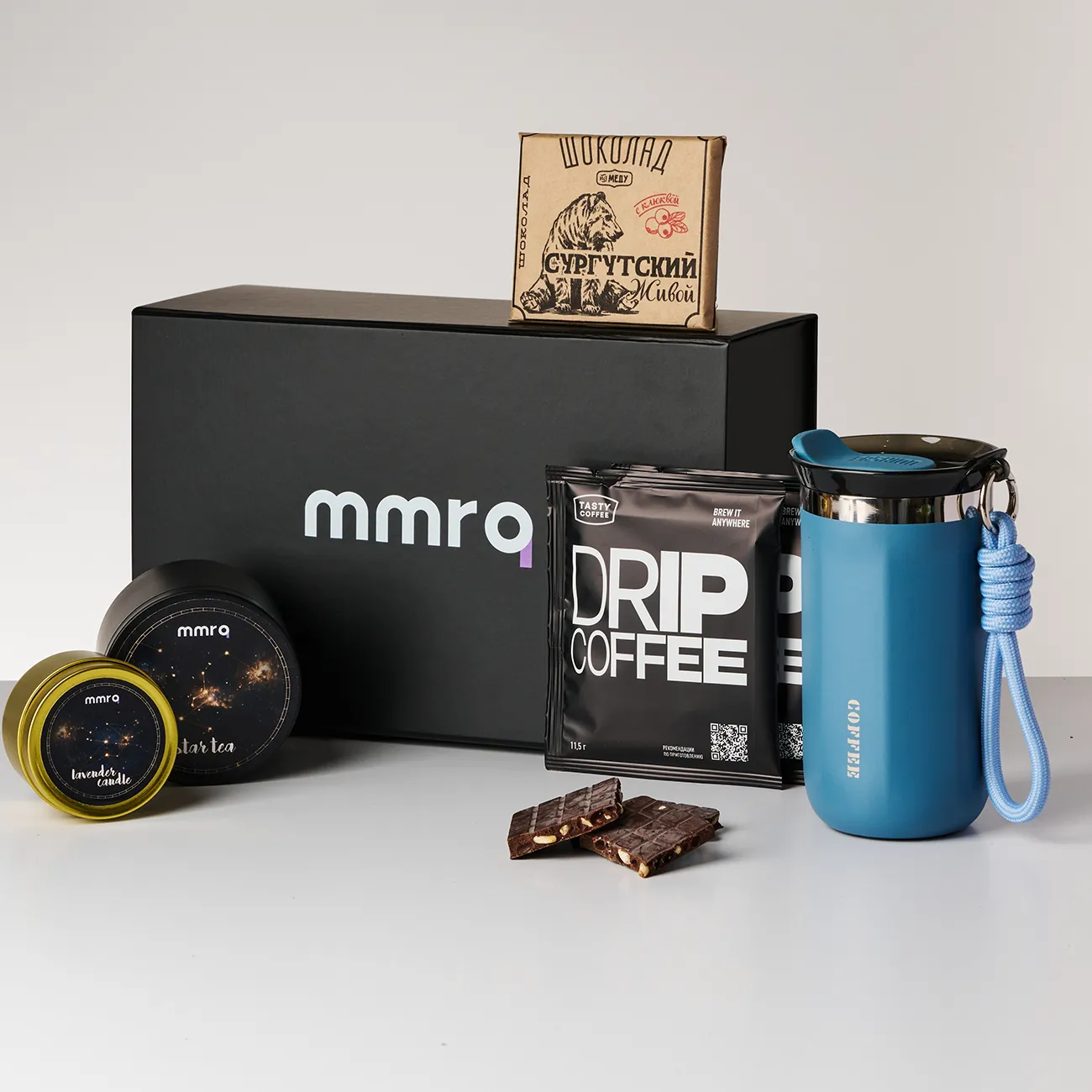 Набор с термокружкой, дрип-кофе, чаем, ремесленным шоколадом и свечой — это классный подарок парню, потому что даёт ему редкую возможность выключиться и устроить себе паузу без лишней суеты. Такой набор создаёт атмосферу тёплого вечера, помогает перезагрузиться и делает его маленькие моменты «для себя» вкуснее, уютнее и совсем не банальными.